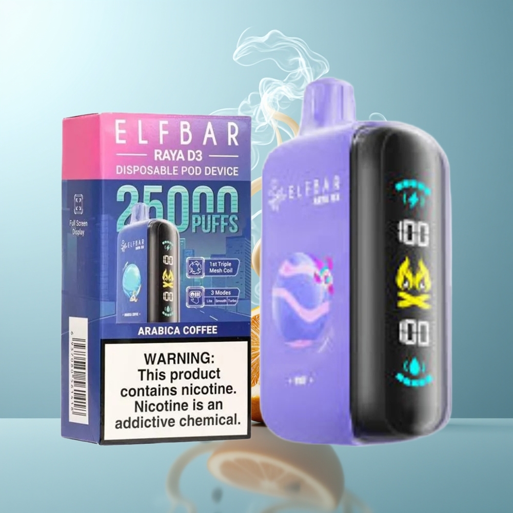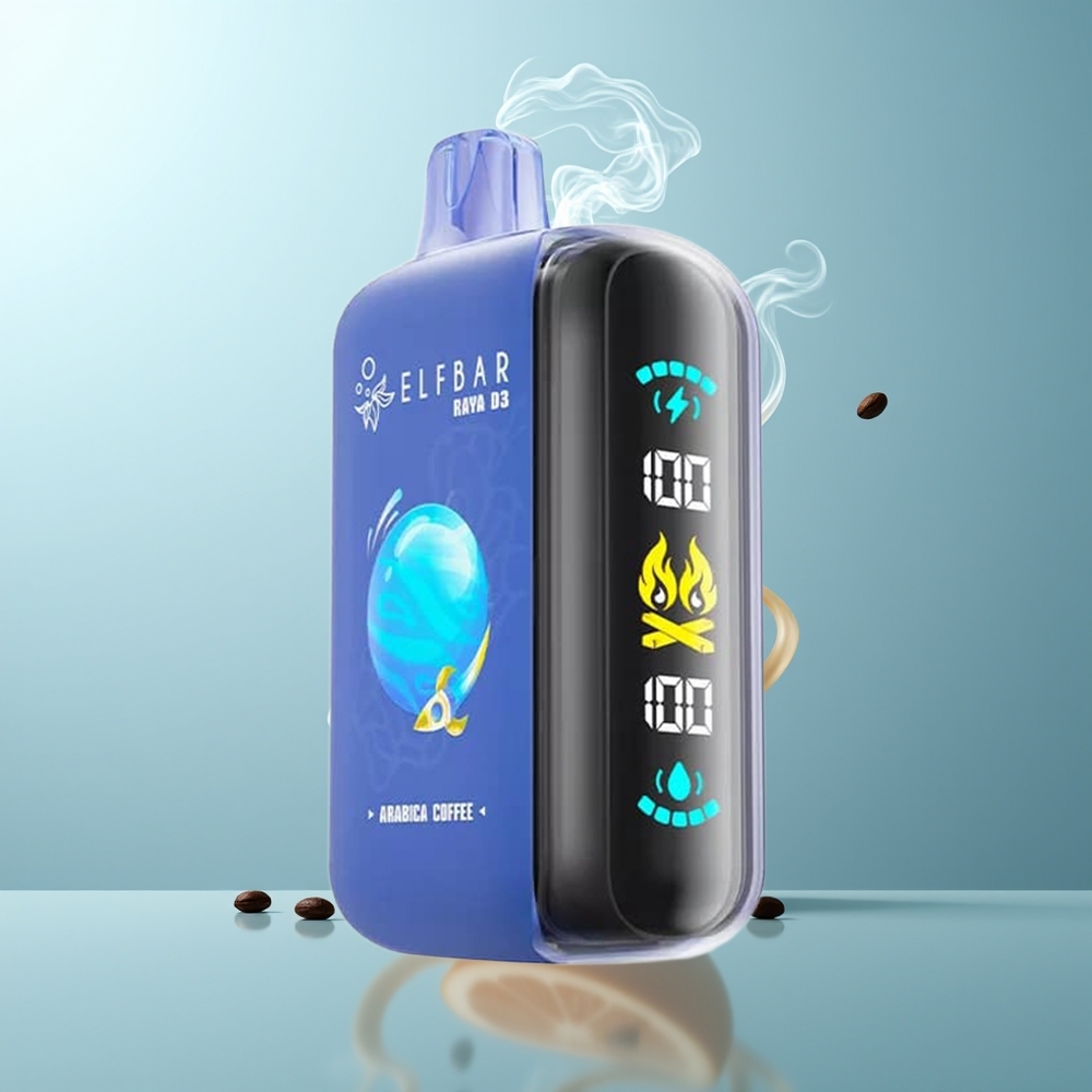 Schweiz Großhandel ELF BAR RAYA D3 25000 Züge Arabica Kaffee 850mAh 23ml 5% Großbildschirm Typ-C