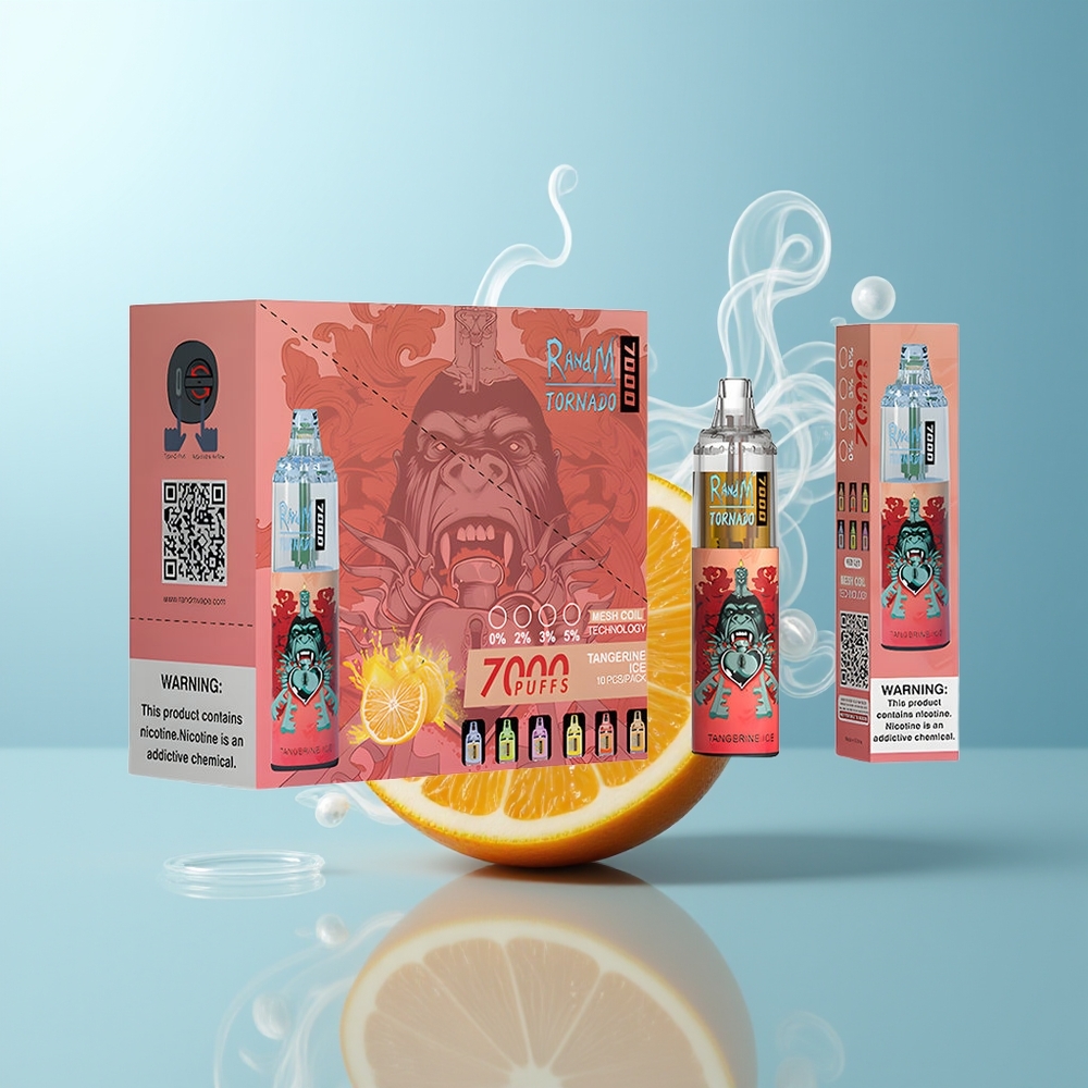 Schweiz Großhandel RandM Fumot Tornado 7000 Züge Tangerine Eis 14ML Mesh Coil Typ-C RGB Luftregelbar