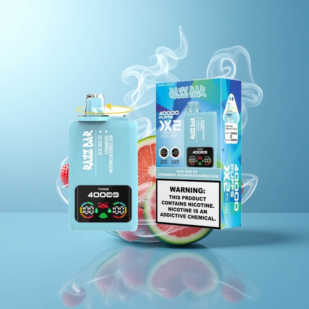 Schweiz Großhandel Razz Bar 40000 Züge Blaue Razz Eis-Erdbeer Wassermelone Bubble Gum Mesh Coil Typ-C Ladeanschluss 650mAh Akku Leistungsbildschirm 2%5% Nikotin