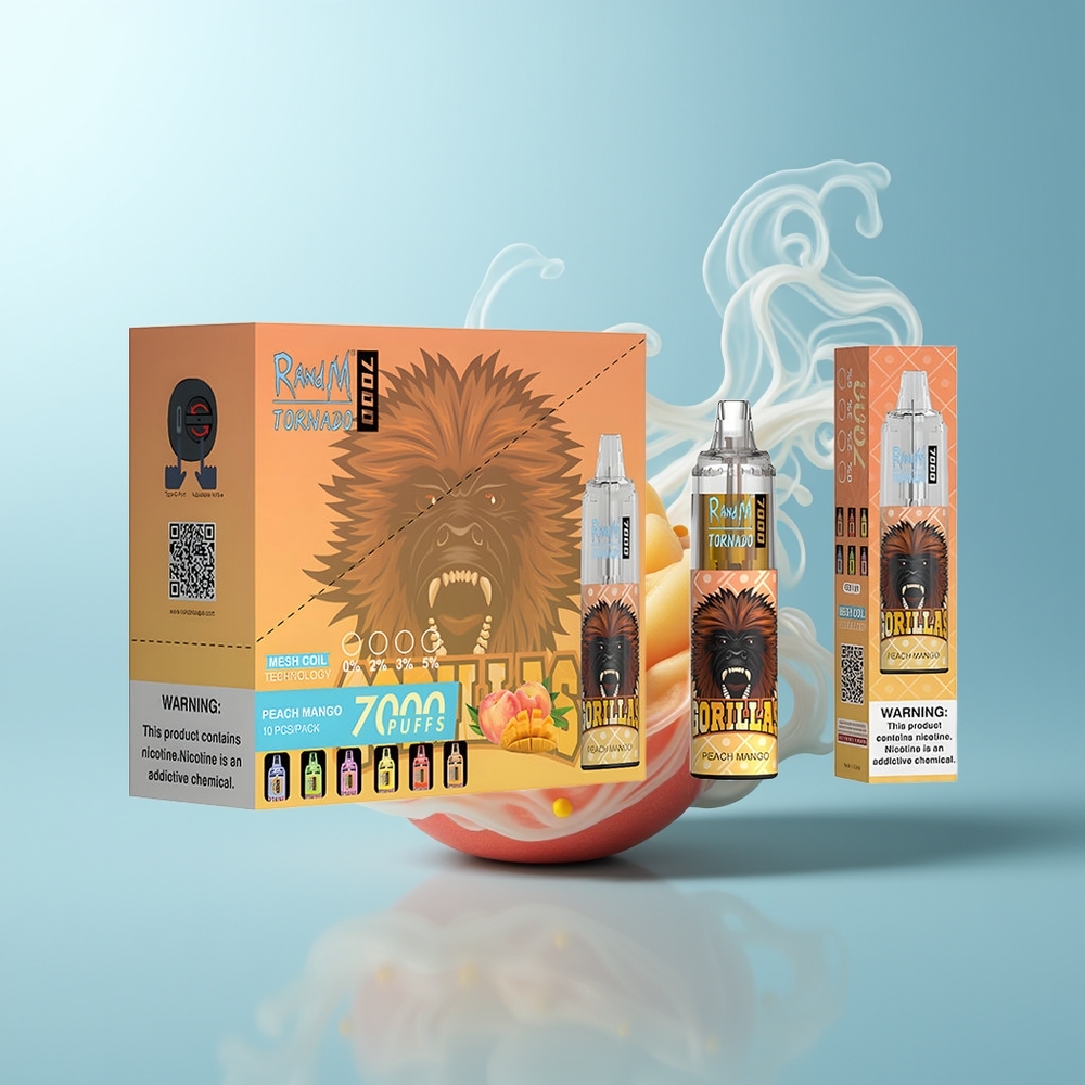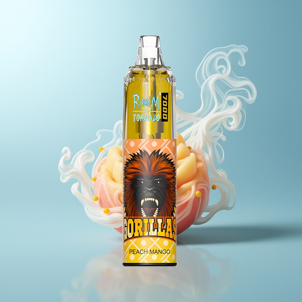 Schweiz Großhandel RandM Fumot Tornado 7000 Puffs Pfirsich Mango 14ML 850MAH Mesh Coil Typ-C RGB Luftregelbar