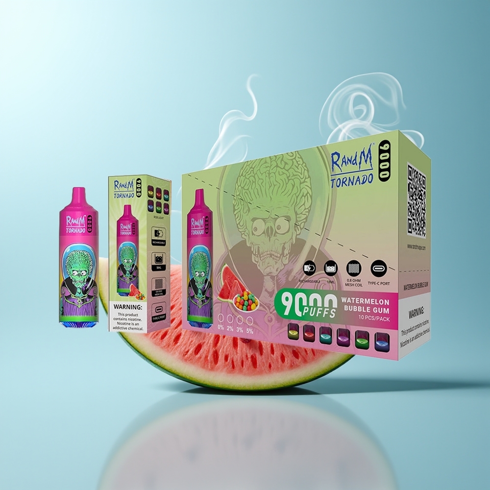 Schweiz Großhandel RandM Fumot Tornado 9000 Wassermelone Bubble Gum 850 mAh 18 mL Mesh Coil RGB Display 54 Sorten