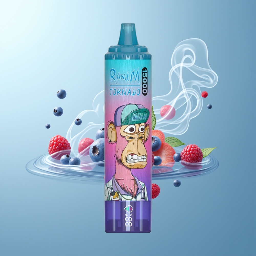 Schweiz Großhandel RandM Fumot Tornado 15000 Züge Blaubeere Himbeere 25ml 850mAh Mesh Coil Typ-C LCD