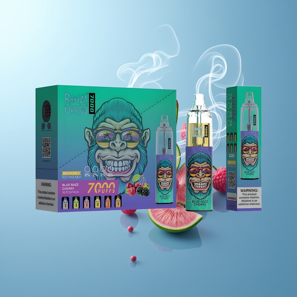 Schweiz Großhandel RandM Fumot Tornado 7000 Puffs Blaue Himbeere Kirsche 14ML Mesh Coil RGB Licht Typ-C Luftregelung