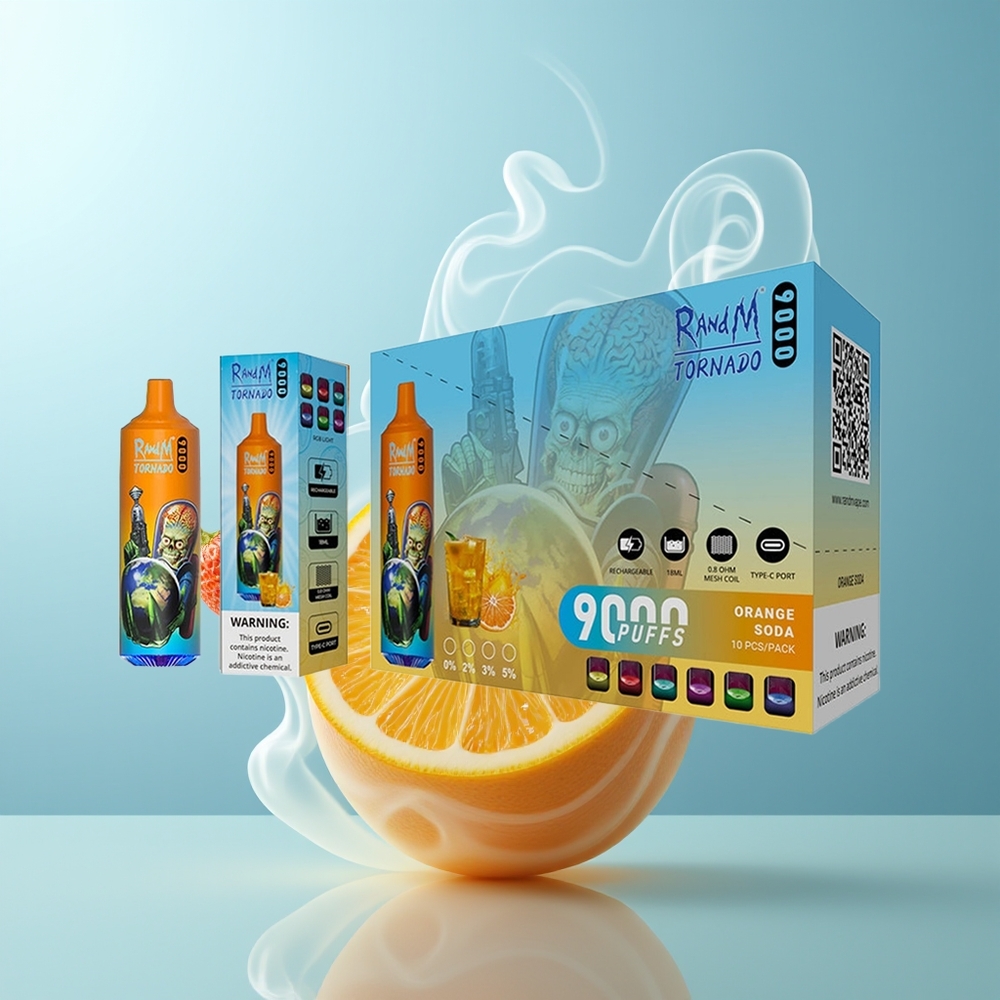 Schweiz Großhandel RandM Fumot Tornado 9000 Orangenlimonade 850 mAh 18 mL Mesh Coil RGB Display