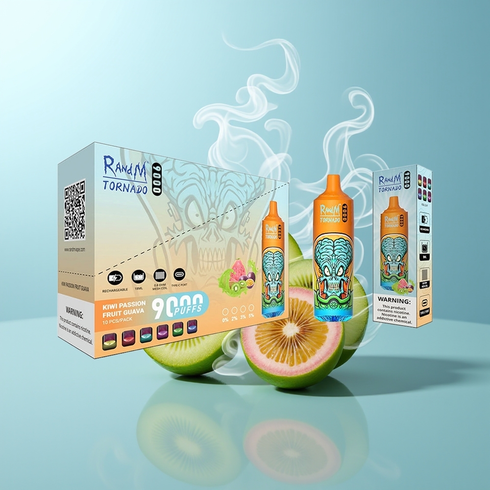 Schweiz Großhandel RandM Fumot Tornado 9000 Puffs Kiwi Passionsfrucht Guave 850 mAh 18 mL Mesh Coil RGB Display