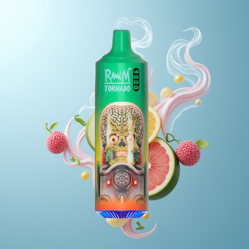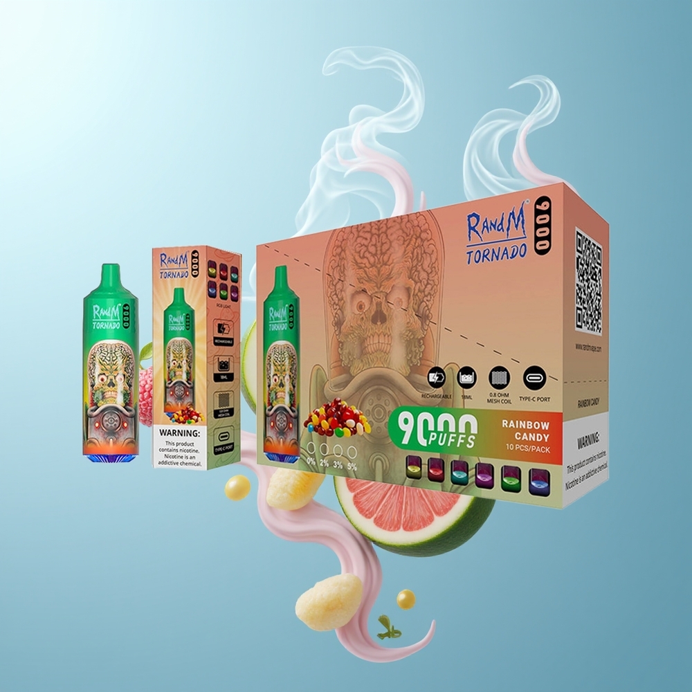Schweiz Großhandel RandM Fumot Tornado 9000 Puffs Regenbogen Bonbon 850 mAh Wiederaufladbar 18 mL Mesh Coil RGB Display 54 Sorten