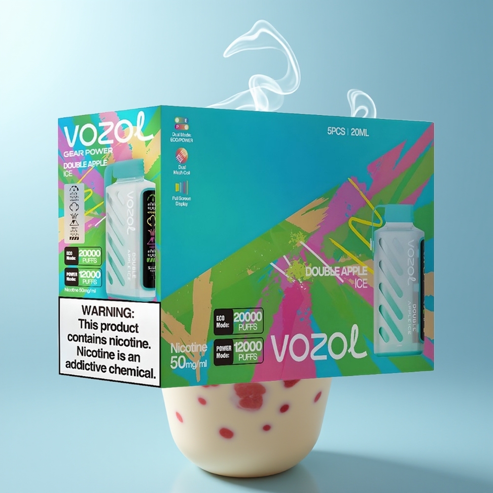 Schweiz Großhandel VOZOL Gear Power 20000 Züge Doppelapfel Eis S.i.L.C. Tech Dual Mesh Coil Full Screen Display 20mL 5%