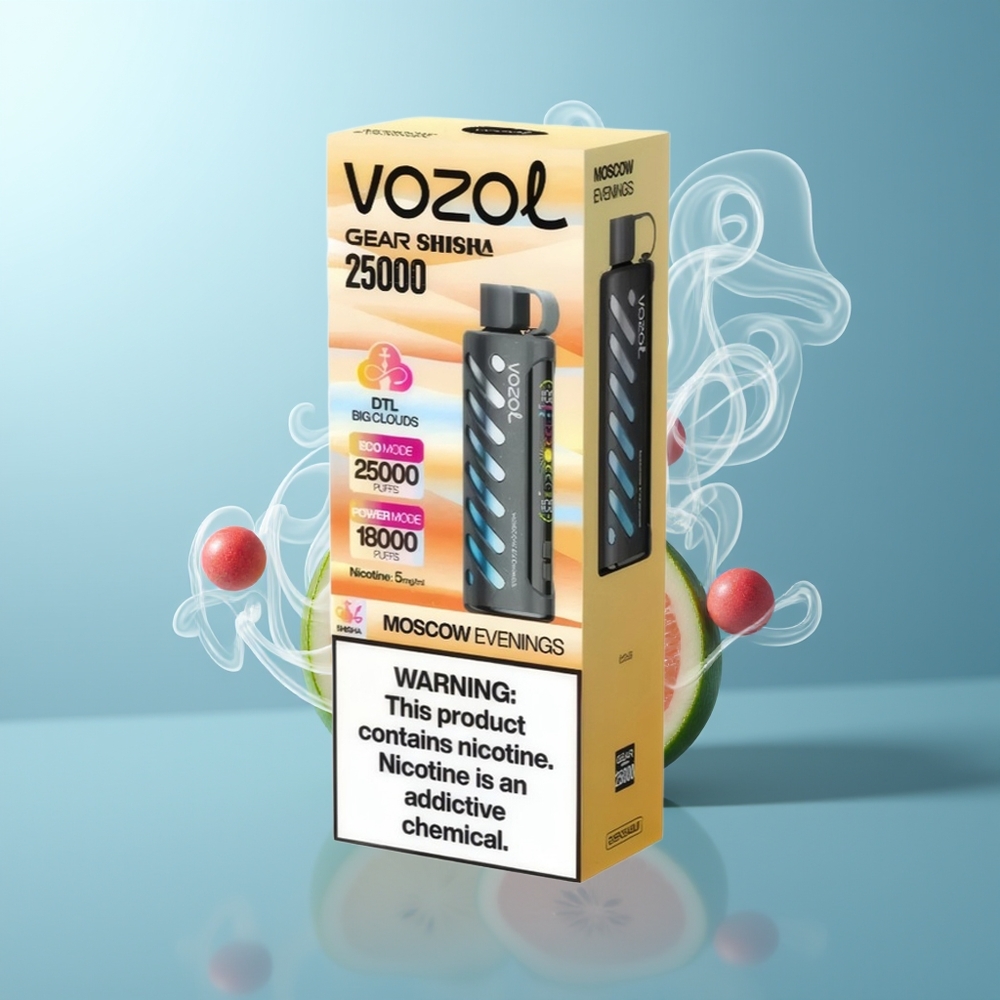 Schweiz Großhandel VOZOL Gear Shisha 25000 Züge Moskau Abende 30 Köstliche Geschmacksrichtungen S.i.L.C Tech Dual Mesh Dual Modes 1000mAh 5mg/ml