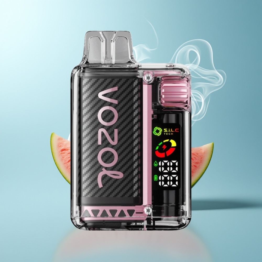 Schweiz Großhandel VOZOL Vista 20000 Züge Pfirsich Mango Wassermelone 650mAh 2% Nikotin OLED Bildschirm S.i.L.C Tech Dual Mesh Coil MCU Chip 65% PCR 6-stufige Watt-Ausgangsanpassung